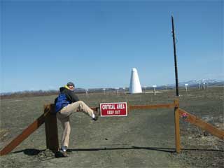 The fog set in right on top of Unalakleet yesterday, so we decided to ride out the road a ways to look for the sun. Just a couple of miles out of town it was a beautiful, clear day. We drove down one split in the road until we finally hit snow that we didn’t think our little 4-wheeler would make it through. Not ready to head back in, we decided to explore out another road. We ended up at the VOR station. In short, it’s a navigation station which allows airplanes to know where they are.