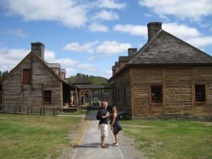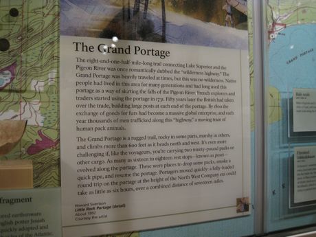 After walking around the town, we headed even further North to do a little hiking. One of our first stops was at the Grand Portage Heritage Center. Not only did we get to walk through the museum to see artifacts and videos, we got to walk through buildings set up as they were by the North West Company back in the days of the voyageurs. This is also at the start of the Voyageur Highway that Bill wants to drag me across for one of our BWCA trips next summer (an 8 1/2 mile portage!!!). It is very cool to be reminded of how much people were able to accomplish back then without our modern day conveniences!