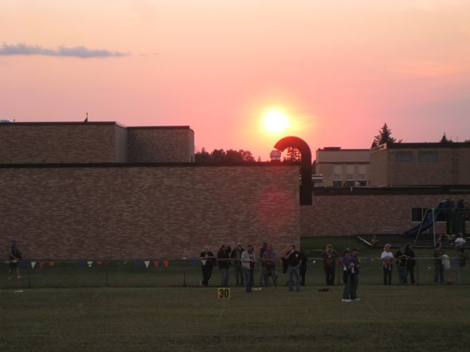 This weekend’s events began after school on Friday. Dad and I went and grabbed the canoe from some folks who’d borrowed it. Then we stopped in to see Gram and Gramp. They were in good spirits, and then we were off to April and Jesse’s. We joined up with Stacy and Dylan, and Brennan, Sibley, and Tina showed up soon after. We enjoyed a quick dinner before heading to watch Jordan play football. This was the first game I’d seen him play since he was in soccer as a little guy. It was a lot of fun! The lighting wasn’t great for getting pictures of the game, but Bill did snap this photo of the sun setting behind good old CHS. What an evening!