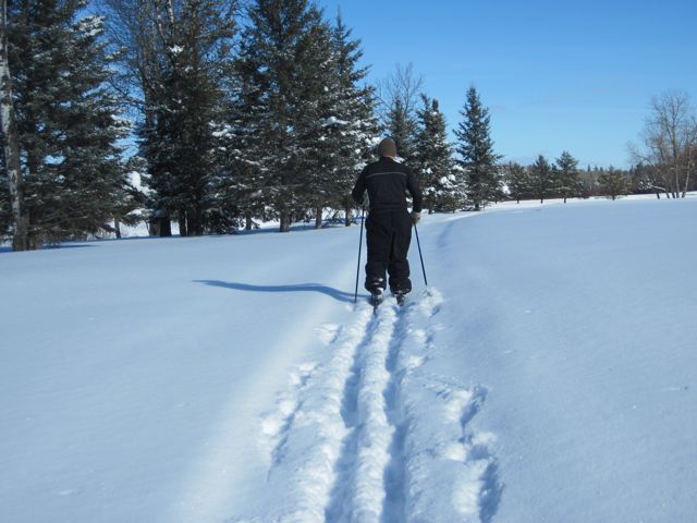 Today Bill and I went skiing. This was my first ski of the year – not Bill’s though. He’s been busy grooming the trails and even became a part of the local ski club.