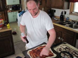 Bill did the majority of the cooking this weekend – starting with steaks on the grill last night. He followed up with sourdough pancakes this morning and made pizza with the left over batter / dough tonight. I think I could get used to this!