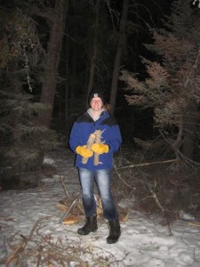 Jenny and I worked on gathering firewood while Bill and Olin set up the tent and stove. Soon we had a cozy warm shelter and were settled in for the night.