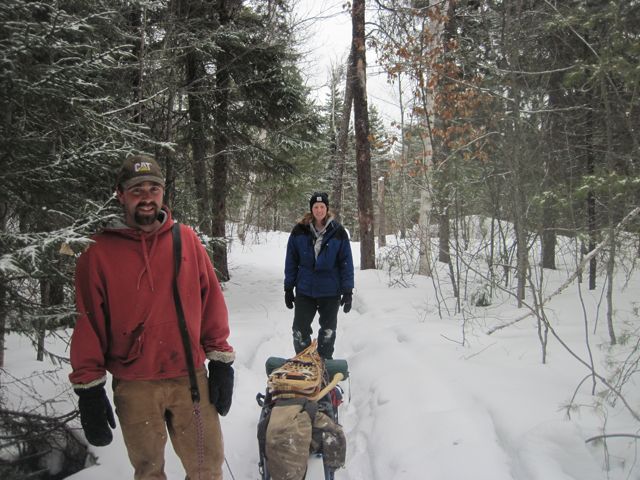 Bill has been trying to convince me that I’d enjoy winter camping for about 3 years now. On Friday, I finally figured out that he was right! We headed out into the Boundary Waters with a couple of friends for the night. It was a gorgeous night for hiking, and the trail was so packed we didn’t even need to use our snowshoes.